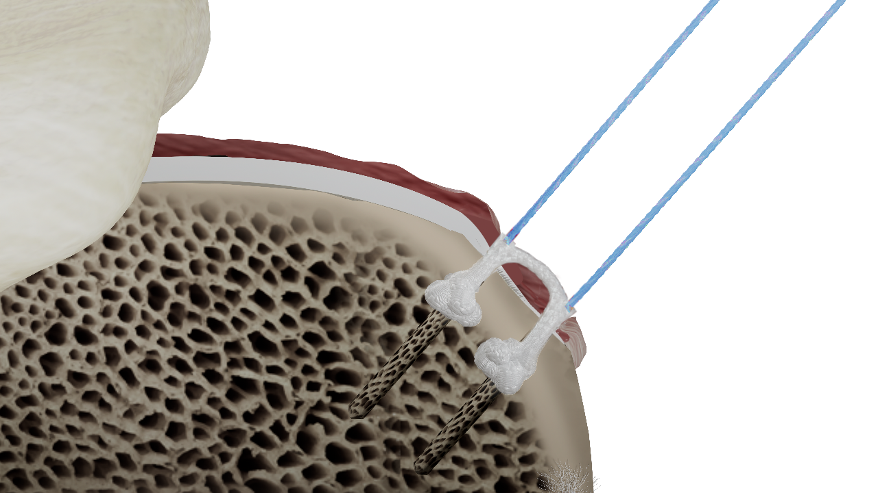Is a 100% suture-based design engineered to achieve soft tissue fixation and demonstrated in preclinical testing to meet established performance standardsUtilizes a dual-anchor configuration within a single implant delivery system, which achieves the necessary fixation of a mattress construct and is designed to minimize bone removal compared to techniques requiring multiple traditional anchors.Repairs tendons in a horizontal mattress configuration, a technique that has demonstrated biomechanical advantages in load distribution and fixation strength over simple suture anchor repairs in comparative studies.1,2